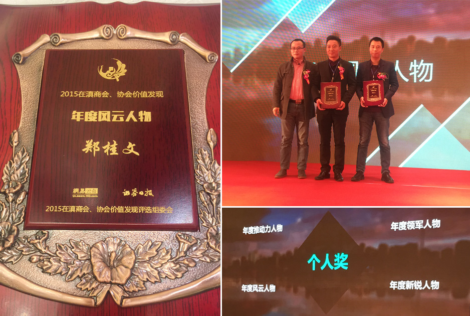 在“2015年在滇商会协会价值发现”活动中,经过在滇40余家商会、协会及专家组的评选,尊龙凯时董事长郑桂文荣获“年度风云人物”称号。