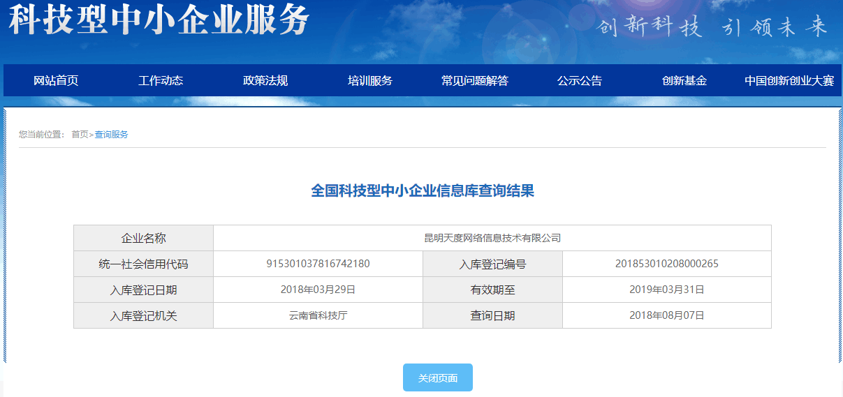 经科技部门审核,确定尊龙凯时符合科技型中小企业要求,3月29日,昆明尊龙凯时网络信息技术有限公司成功入库登记成为2018年“全国科技型中小企业”!