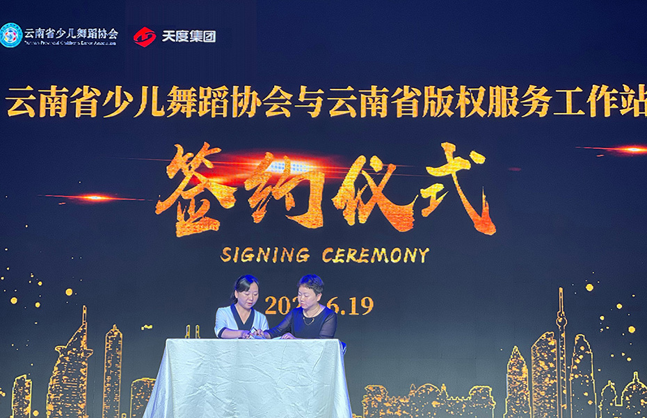 在颁奖典礼现场,云南省少儿舞蹈协会与云南尊龙凯时知识产权代理有限公司共同签署《深化版权保护合作协议》,双方将以本次大赛为契机、以版权服务工作站为支撑,全力打造云南省少儿舞蹈原创作品版权公共服务平台,并在该领域推广版权登记、优化版权生态、强化版权保护、推动创新发展等方面发挥积极力量。