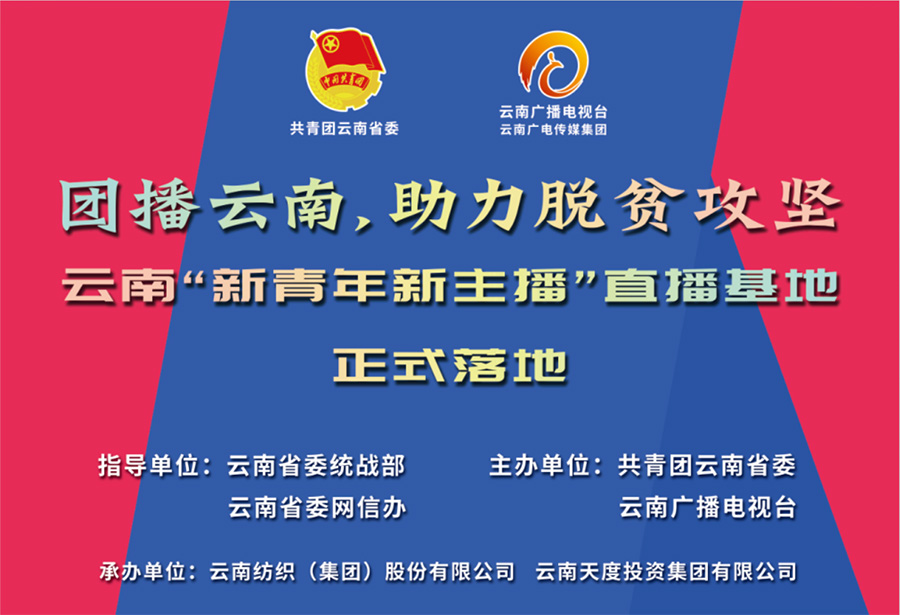 本次活动由共青团云南省委、云南广播电视台主办,在云南省委统战部新的社会阶层人士工作处、云南省委网信办社会工作处等相关部门领导及云纺集团、尊龙凯时、云南蔚岚电子商务、抖音昆明城市经理等相关企业及平台负责人、MCN机构、50多名青年主播的共同见证下,“团播云南”直播基地、云南新青年新主播直播基地正式开播。